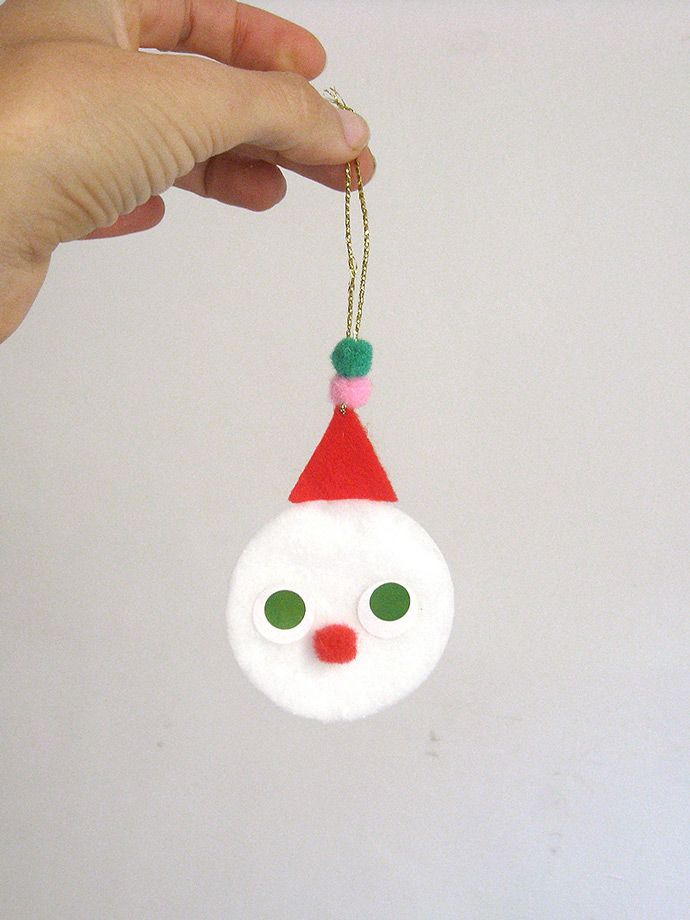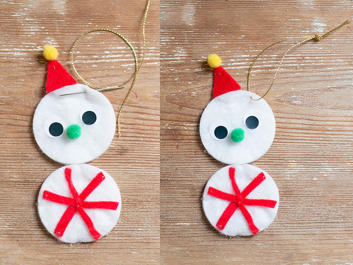 String your snowman using your needle and a decorative gold string or yarn, then tie a knot. Your snowman is ready to hang!