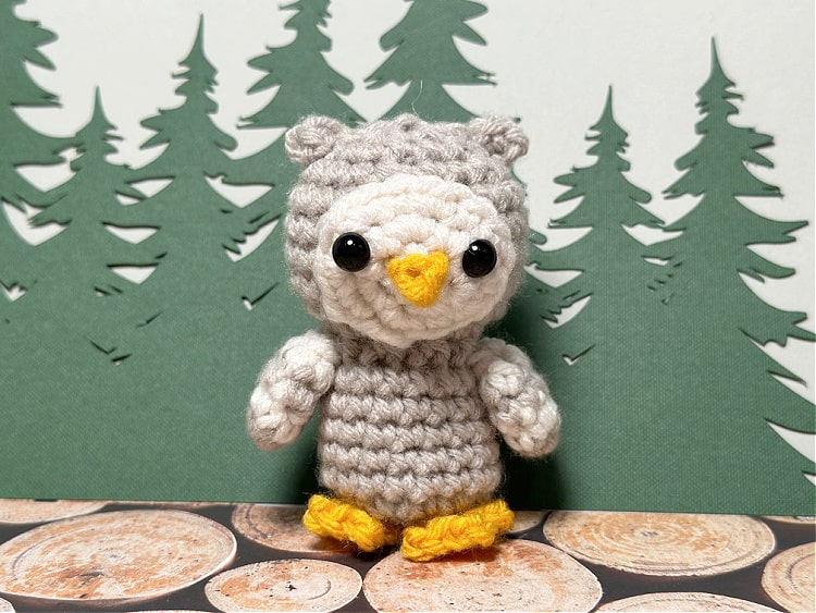 With the owl about half of the pieces are made with a magic ring and worked in the round and the other half begin with a chain (sometimes a very short one), it is indicated in the pattern which way each piece is made. The eyes are added to the face piece rather than to the head like they normally are, If you don't want to make the face and just want to add the eyes to the head, just add them in the same place as all of the other animals in the set (between rounds 13-14 of the head).