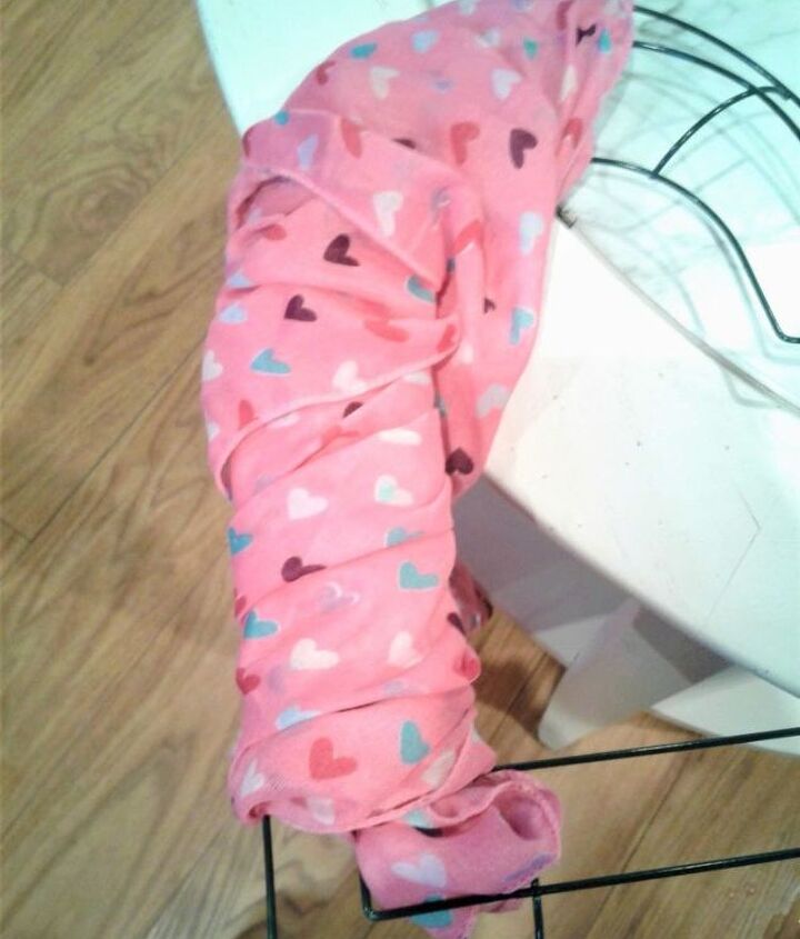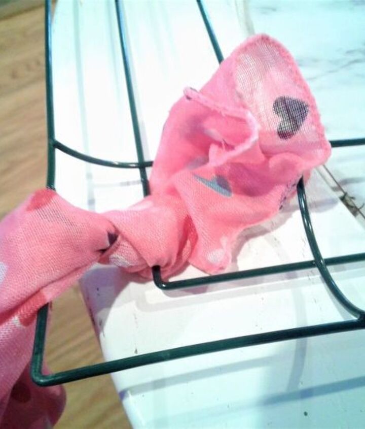 You could also glue down your scarves instead. I chose to knot it so that if I ever wanted to, I could reuse the scarves and/or the heart frame.