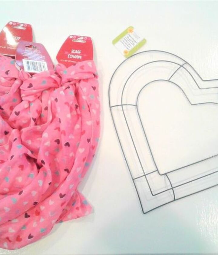 Start at the bottom of your heart frame and tie a knot around one of the pieces of the frame. Then begin wrapping your scarf around the entire frame. If you scarf has a special pattern that you want to face a certain direction, make sure you begin wrapping your scarf in the direction you want.