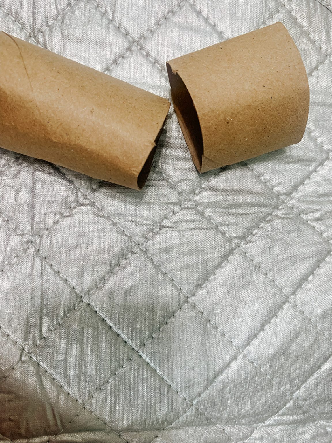 4 – Grab your paper towel roll and cut it to be about 2 “ long. It doesn’t have to be perfect. Cut as many as you need for your set of napkin rings. Tip* Use the above ideas instead of the paper towel roll for your rings. Be creative and have fun.