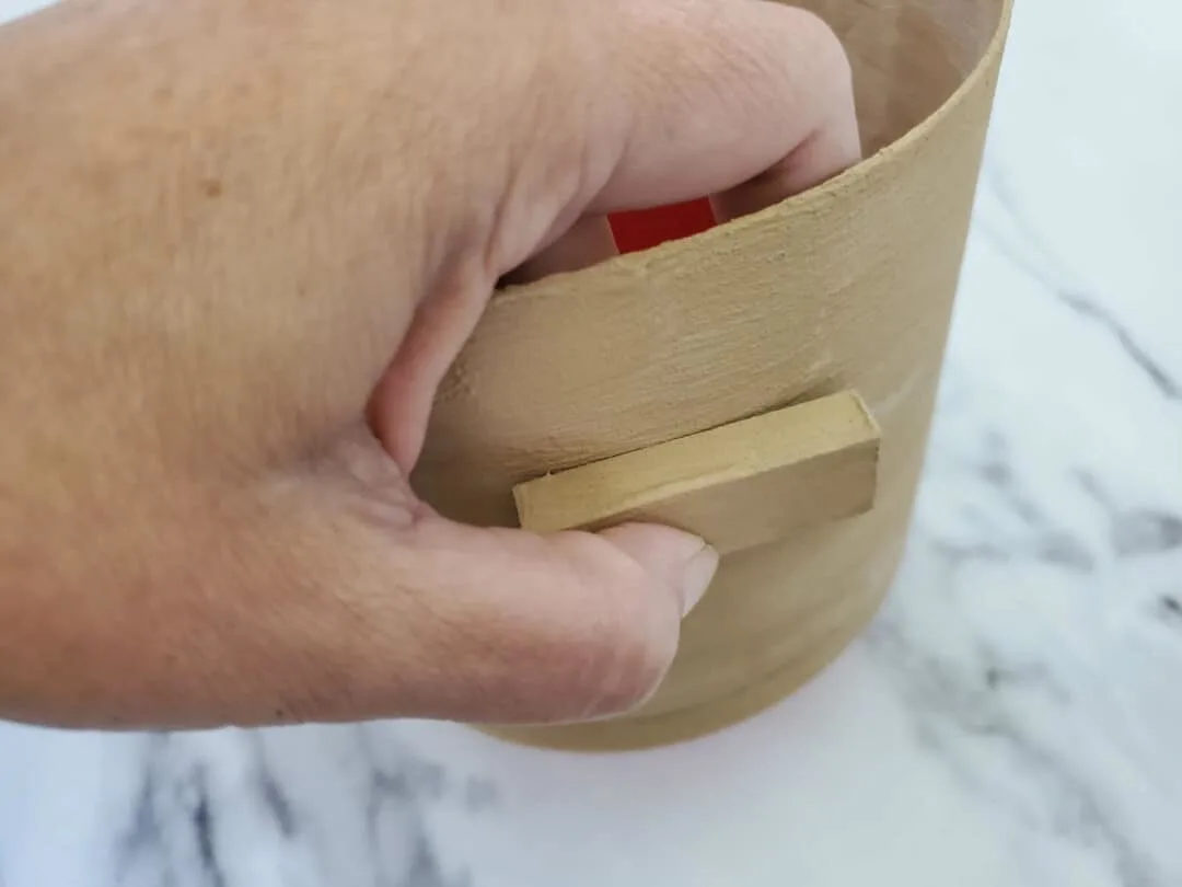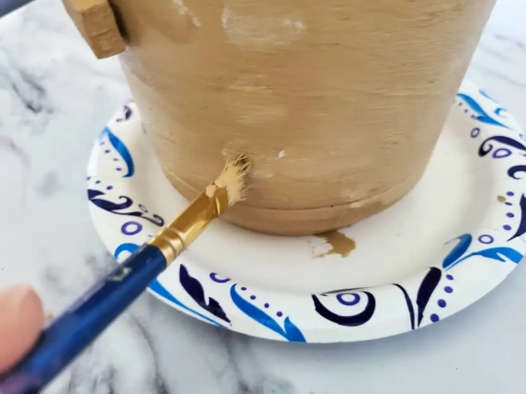 Use the mixture to paint the entire outside of the pot and halfway down the inside.