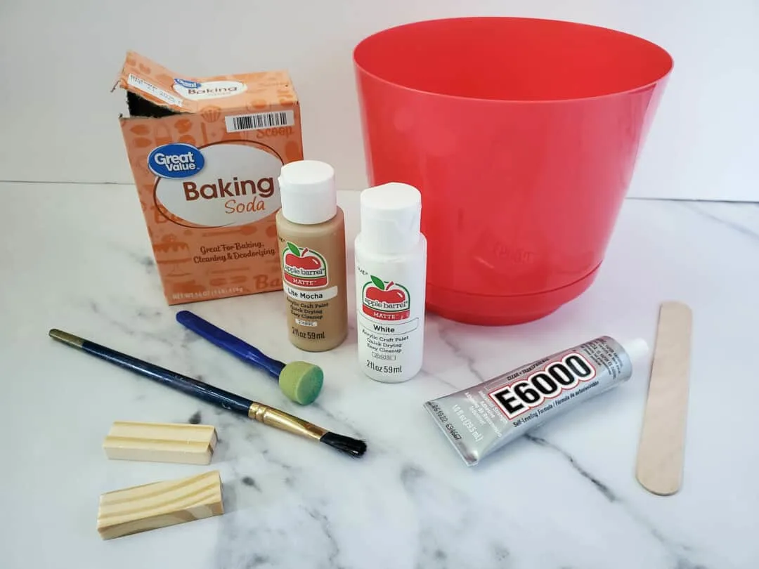 Add a small amount of baking soda to a small container, then add some Lite Mocha paint.