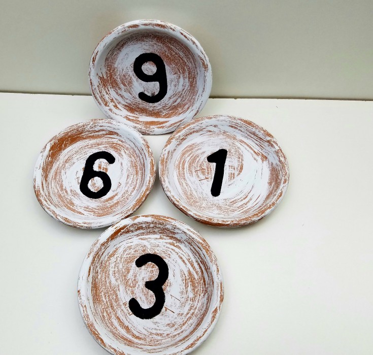 I continued until I had all the numbers stenciled in the center of each saucer.