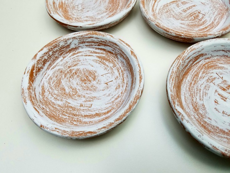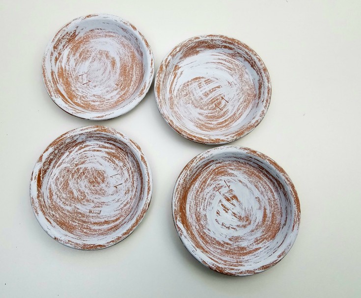 Once dry flip the saucers over and dry brush chalk paint onto the other side as well.