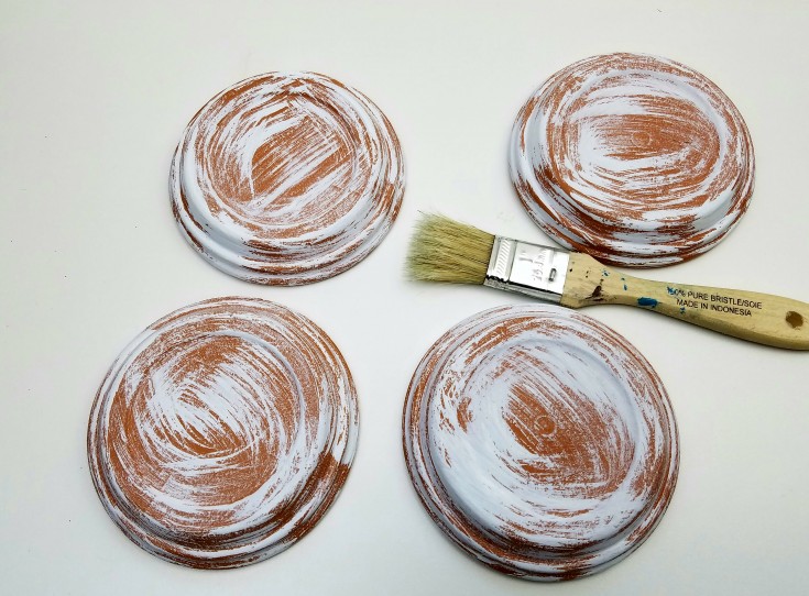Start off by dry brushing some chalk paint on your terra cotta saucers.