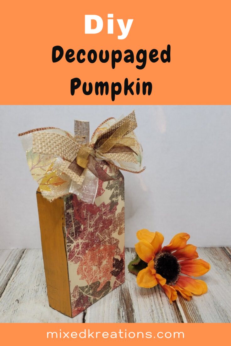 That’s it for this DIY Decoupaged Pumpkin. Weather you want the scrapbook paper side displayed or the traditional orange side, just turn the bow around on the stem for the side you want to show.