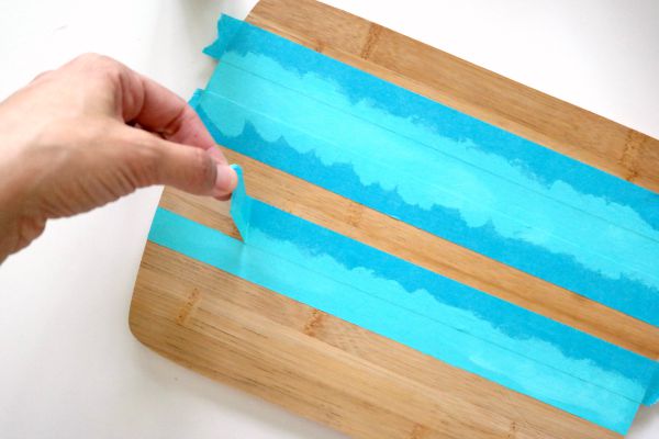 Measure (or eyeball) where you want your first two lines to go, tape them off and paint! For easy measuring, I made all of my lines exactly one piece of tape wide. After painting the firs t2 lines, let them dry completely. I know, I know… it’s so hard. But while you wait, you can start thinking about game pieces! You can literally use anything from cereal to candy to rocks to buttons, sequins, toy cars, puzzle pieces, random other game pieces.