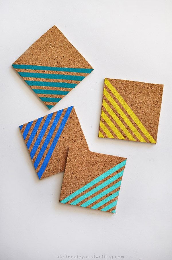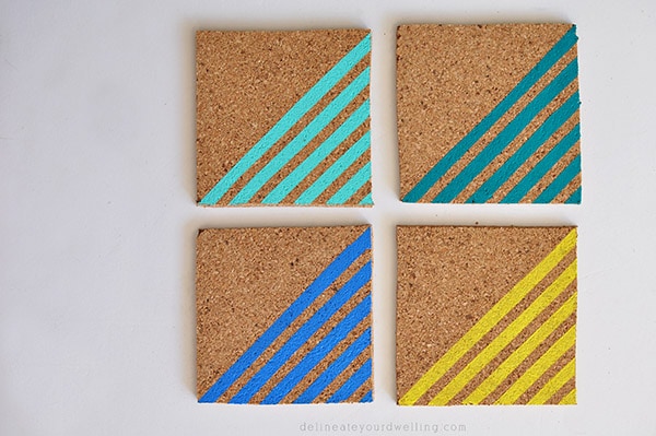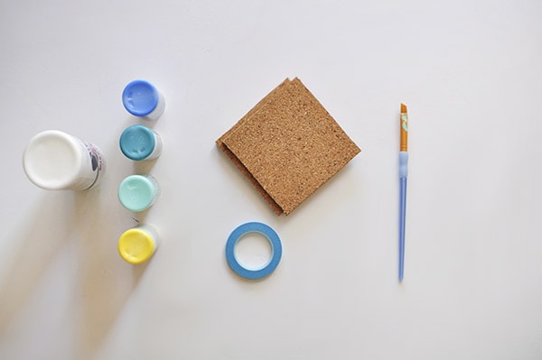 Four Acrylic Paints / Set of 4 Cork Coasters / Martha Stewart Patterning Tape / Brush